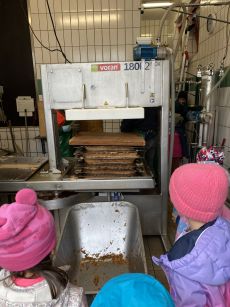 4. Die Äpfel kamen auf das Förderband und wurden unter den wachsamen Augen der Kinder zur Presse transportiert.