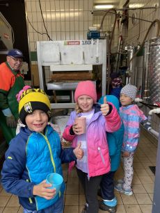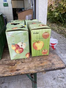 9. Den abgefüllten Apfelsaft durfen wir mit in die Schule nehmen. Der reicht bestimmt sehr lange.